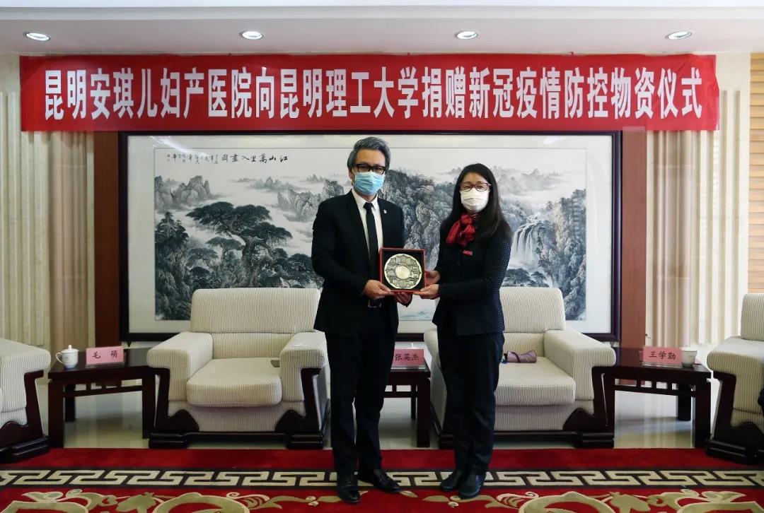 谈及捐赠物资的初衷,安琪儿医疗控股集团董事、首席运营官、安琪儿妇产医院总院长毛萌教授说,当前全国疫情形势出现积极变化,昆明理工大学复学在即,安琪儿希望为昆工的疫情防控工作贡献一点绵薄之力,通过这批防疫物资助力昆工6万余名师生安全返校。