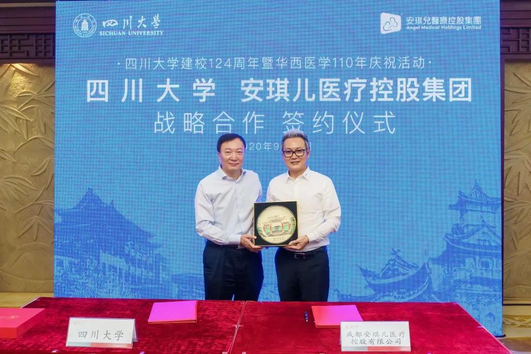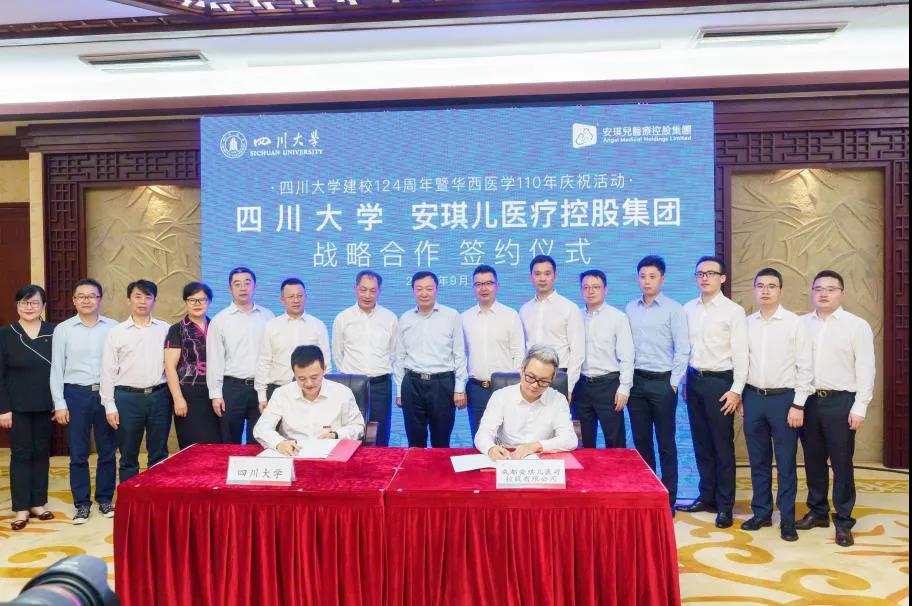 2020年9月16日,四川大学、安琪儿医疗控股集团正式达成战略合作,并于川大望江校区举行签约仪式,宣布设立1.1亿元“四川大学·安琪儿教育发展基金”。四川大学校长李言荣,副校长张林,华西临床医学院/华西医院党委书记张伟,党政办主任李正赤,华西医学中心常务副主任沈彬,外联办主任荣建国,华西第二医院党委书记王素霞,四川大学商学院EMBA教育中心常务副主任曹麒麟;安琪儿医疗控股集团创始人、董事长兼首席执行官卓朝阳,新加坡淡马锡代表陆佳敏,香港新程投资代表纪晨,集团联合创始人、董事、副总裁蒋林,集团联合创始人、董事、副总裁黄国强,集团董事会秘书、首席财务官张泓帆,集团首席品牌官蔡靖,集团首席行政官徐玥等领导出席此次仪式。