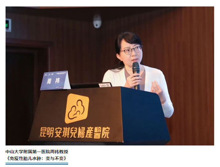 周祎教授首先高度凝练地讲授了免疫性胎儿水肿的发生机制、临床表现、诊断思路和宫内治疗方案,进而