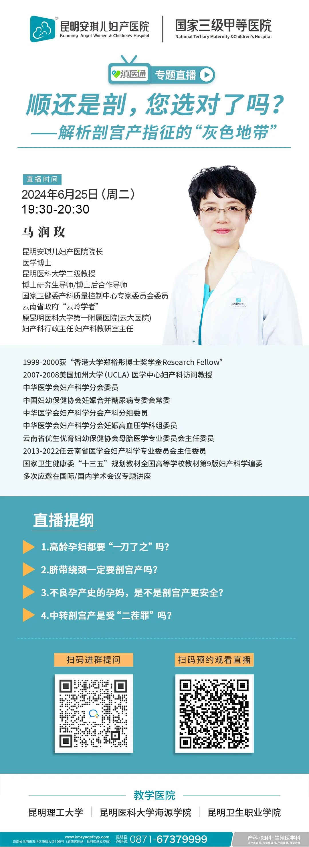 2024年6月25日(周二)19:30-20:30,马润玫教授再次做客滇医通直播间,为大家解析剖宫产指征