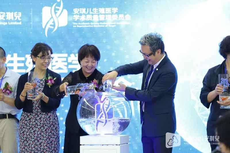 随后,安控集团卓朝阳董事长与张学红教授一同为安琪儿生殖医学学术质量管理委员会的标志揭幕。