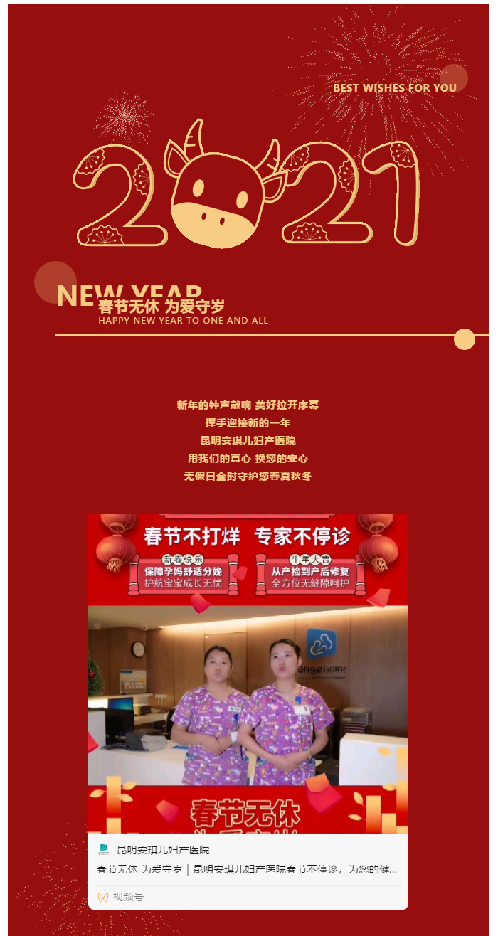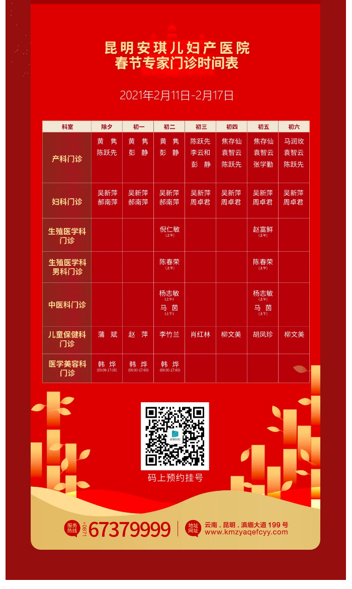 春节无休 为爱守岁 | 昆明安琪儿妇产医院春节不停诊,为您的健康保驾护航