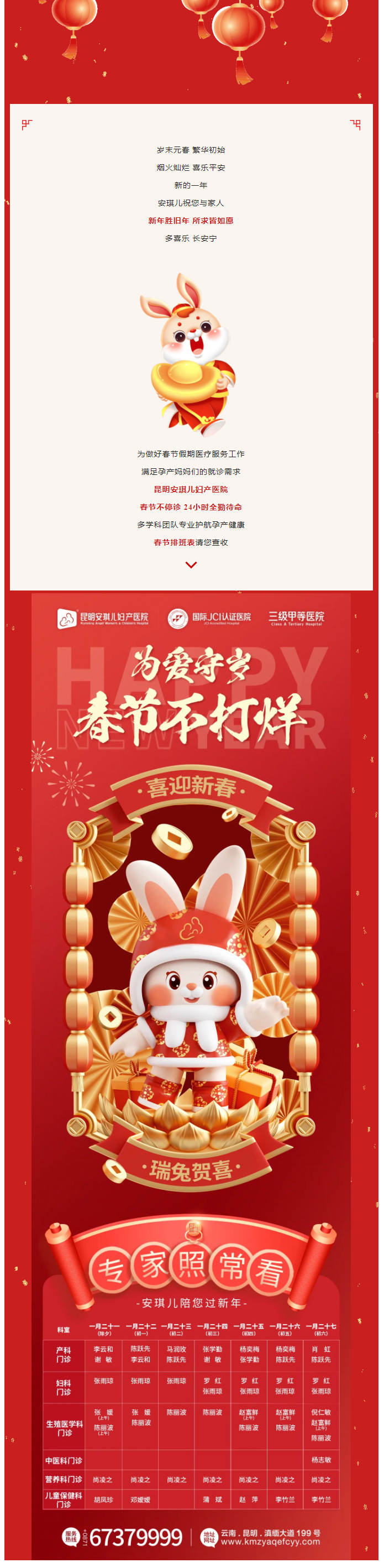护航新春 安心就诊 | 昆明安琪儿妇产医院春节排班表,请您查收!