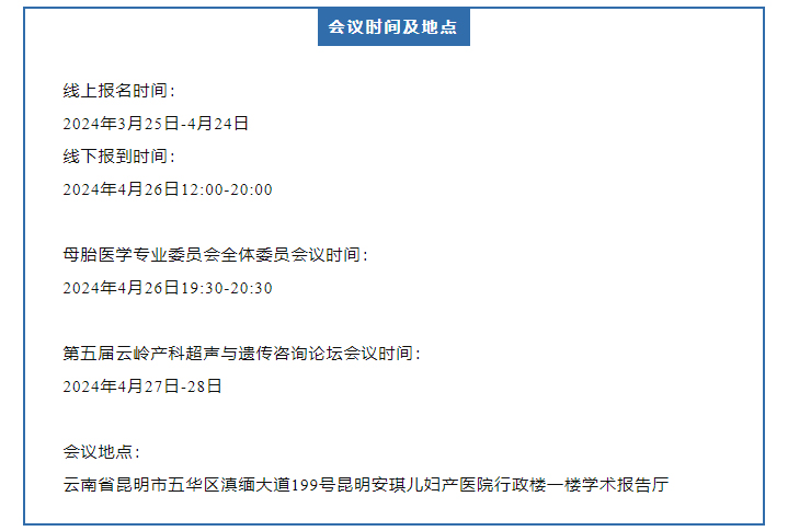 正在报名|第五届云岭产科超声与遗传咨询论坛暨第一届母胎医学专业委员会全体会议